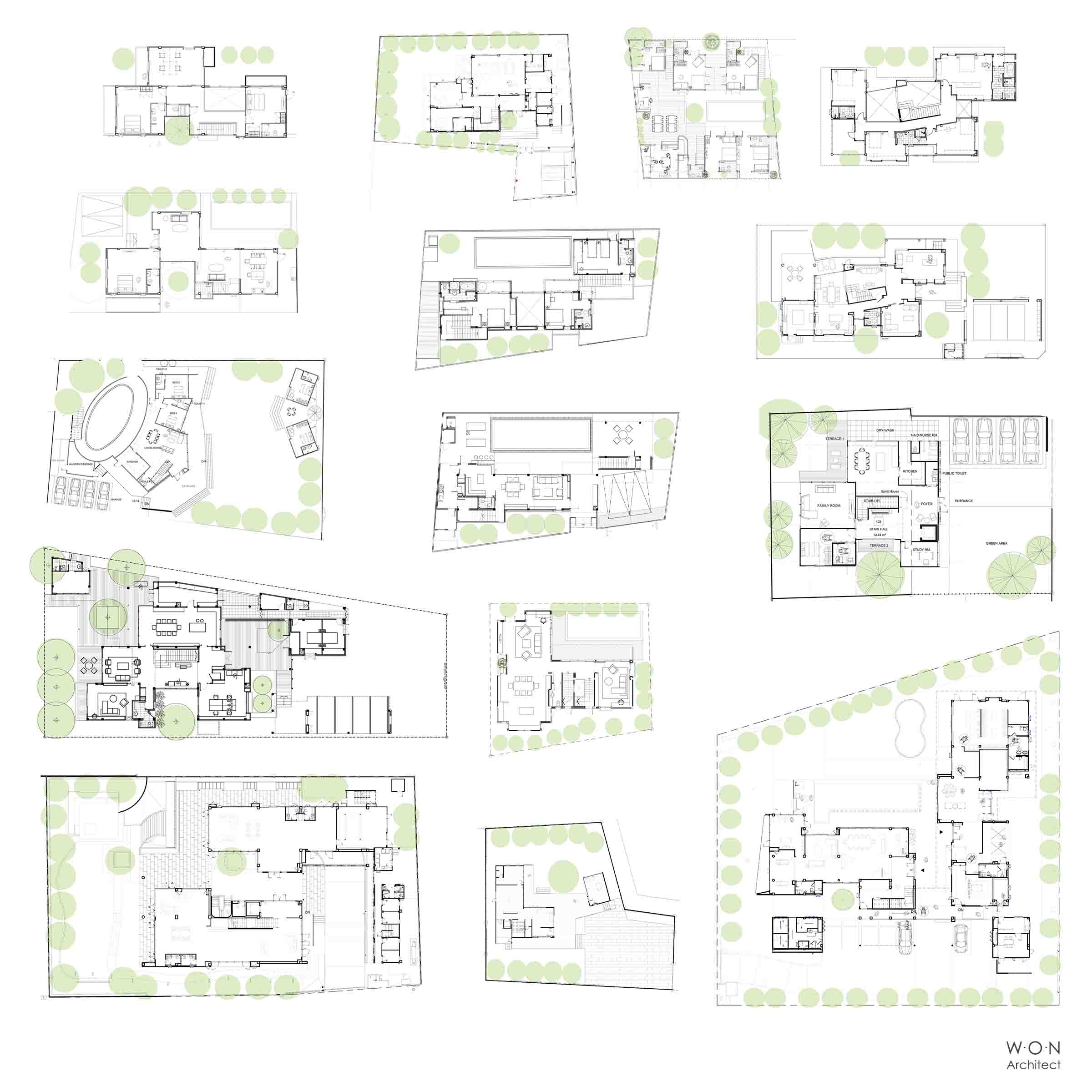 House Plan แบบบ้าน W.O.N. Architect. The purpose of our house plan designed by W.O.N Architect is a good sense of place, privacy and calm. The terrace and courtyard is used to connect to the green area and isolate from the disturbing surroundings.