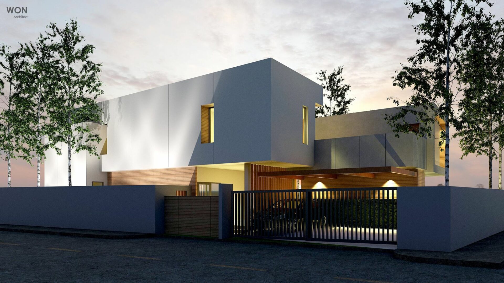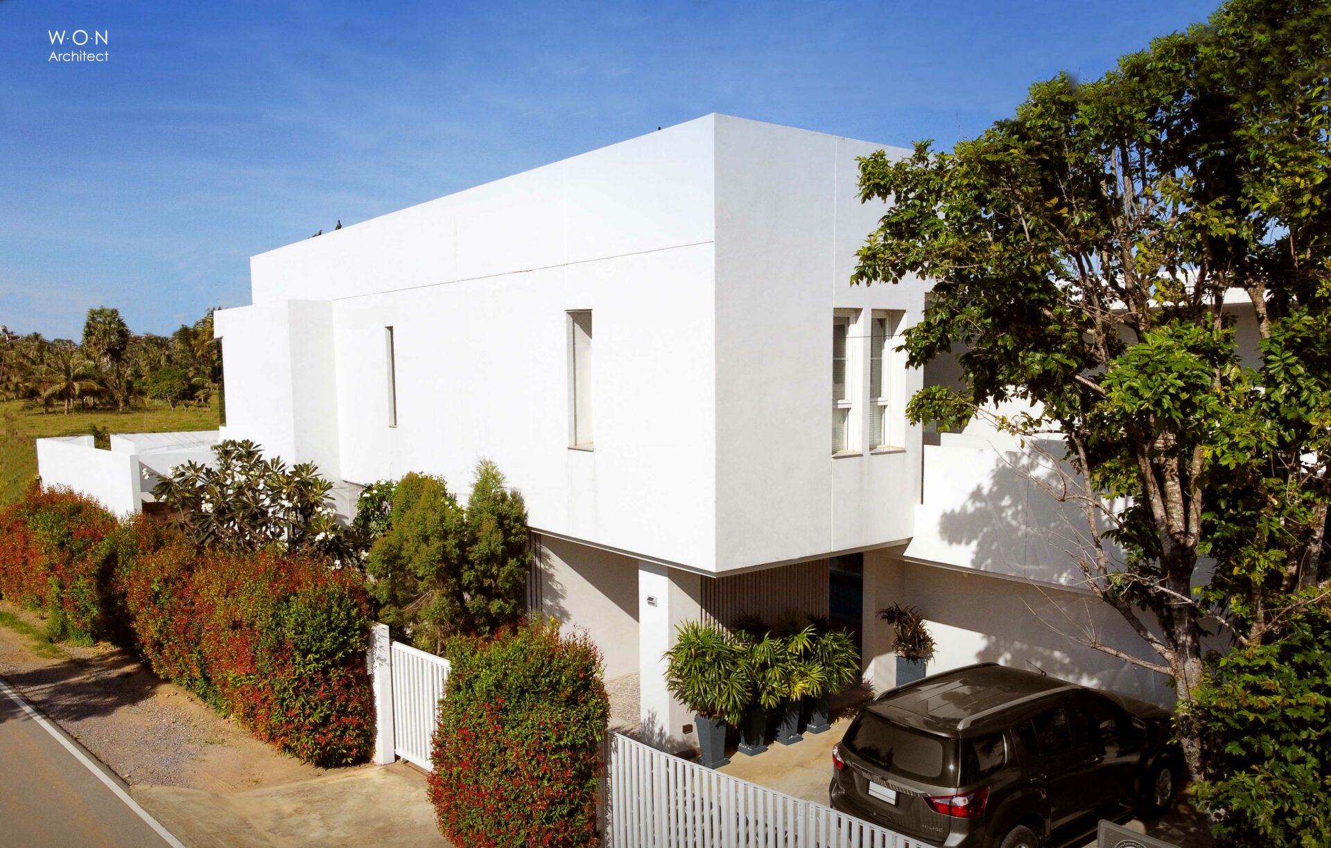 Located in the serene coastal area of southern Thailand, this modern minimal pool villa is designed to embrace simplicity, natural light, and a seamless connection with nature. The house features a pure white architectural mass surrounded by a lush green landscape, creating a striking yet peaceful balance between built form and nature.