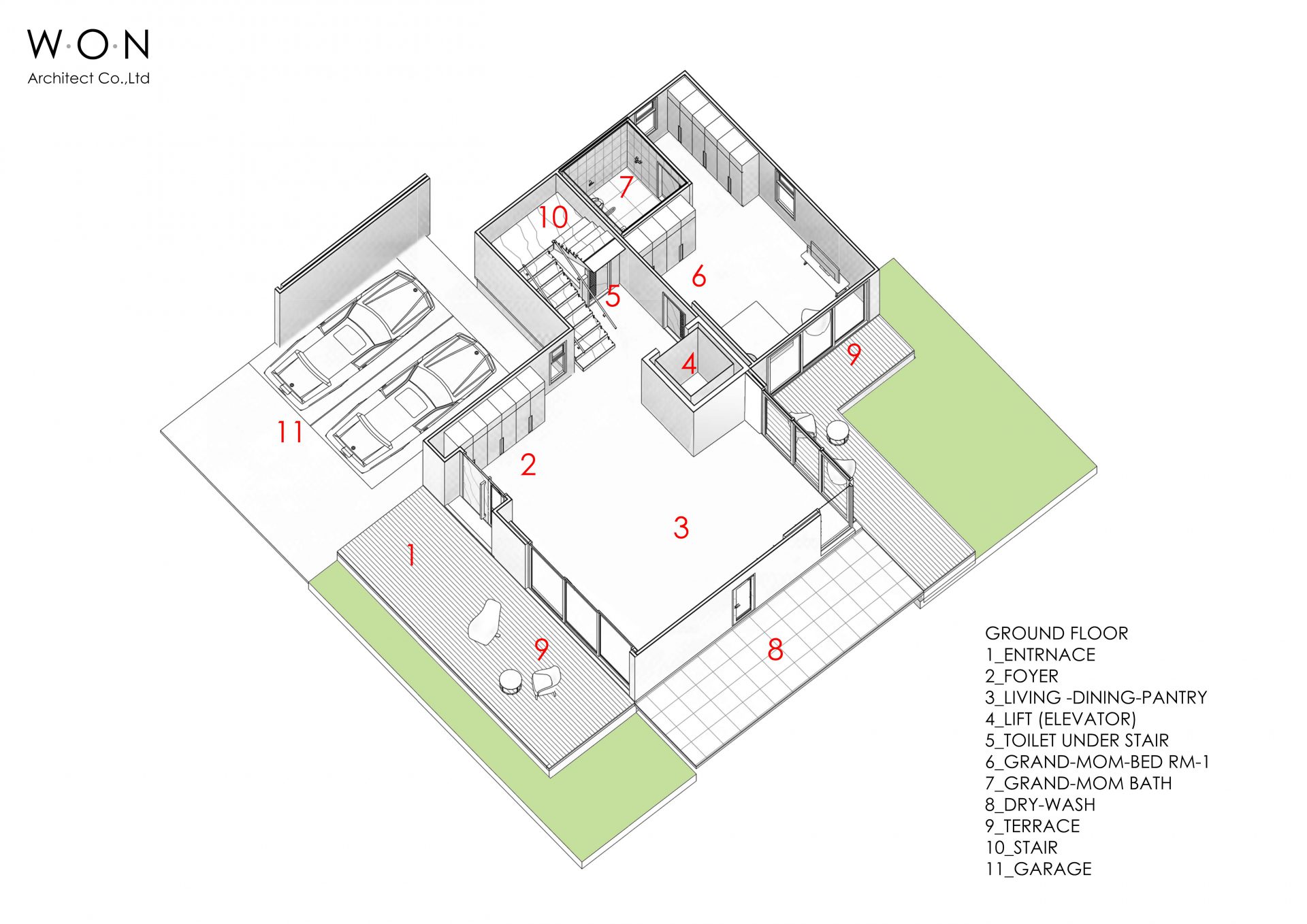 Modern Contemporary 250sqm Land16x18m, 3 Bedroom, 4 Toilet and 2 car parking. Minimum land required land area 75sq.wa 16mx18m The house planning is only our guideline, it can be adjustable for customers who like to do design & build with W.O.N Architect team.