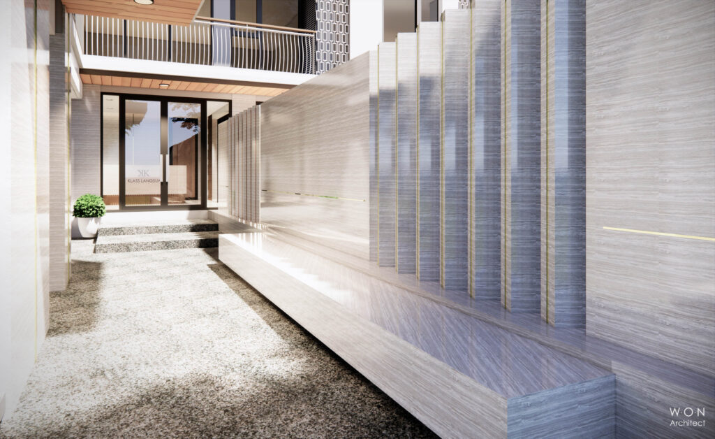The purpose of this project is to design, re-plan and wrap the facade of the existing shop house. The owner wishes to have new facilities that are convenient for maternity clinic activities such as elevator (passenger lift) and easily clean and durable material. Double skin red wood...